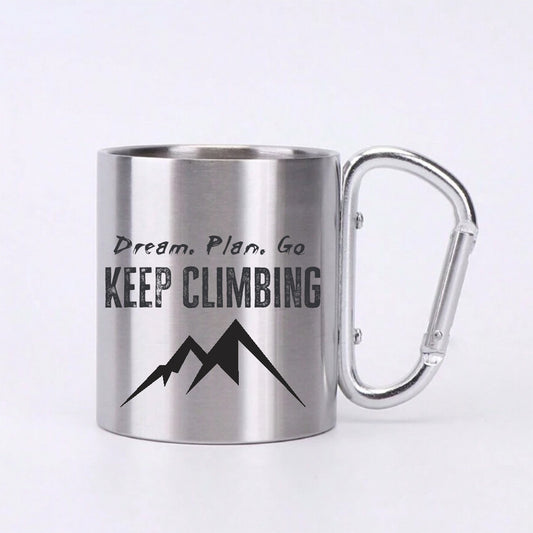 Персонализирана стоманена чаша с карабинерна дръжка 280 мл - перфектна за приключения