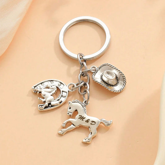 Персонализиран ключодържател „Кънтри душа“ с конче, подкова и шапка