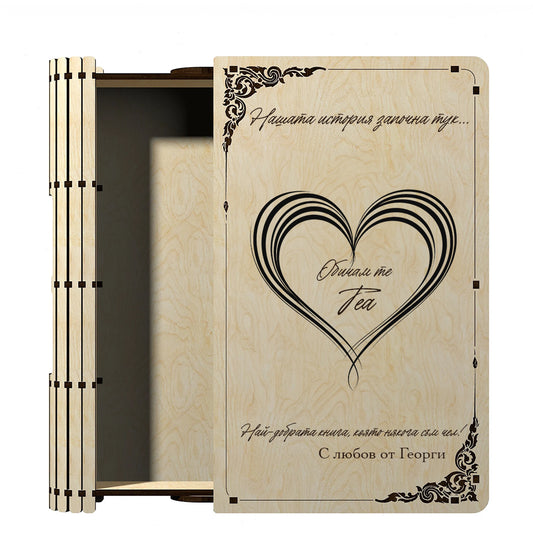 “19 причини да те обичам” Дървен пъзел сърце в елегантна кутия с името на Вашия любим човек