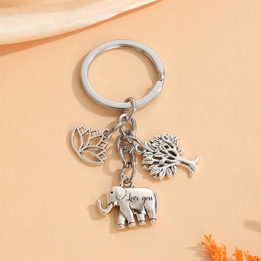 Персонализиран ключодържател с лотос, слон и дърво на живота – символичен подарък с гравиране