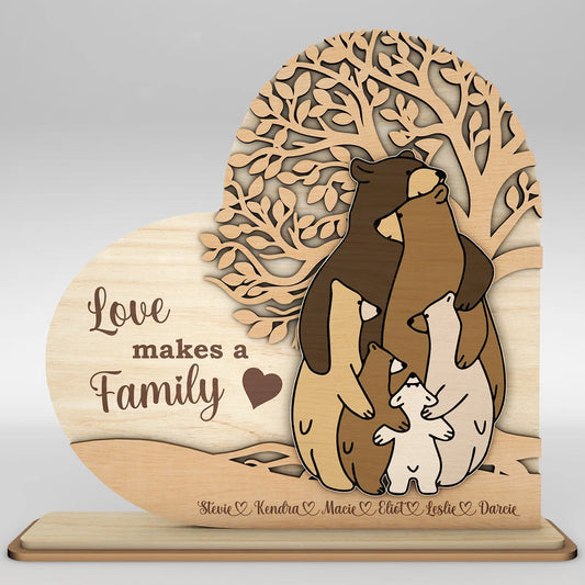 Дървена семейна табела с мечета – Перфектен подарък за семейството!