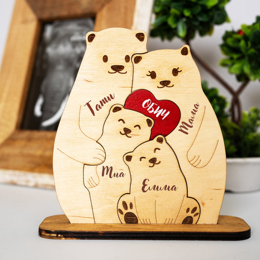 Персонализирана дървена фигура “Семейство Мечета” с гравирани имена
