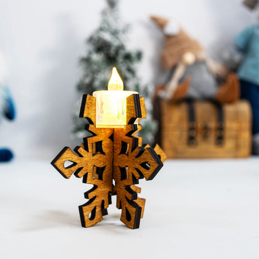 Дървен свещник Снежинка