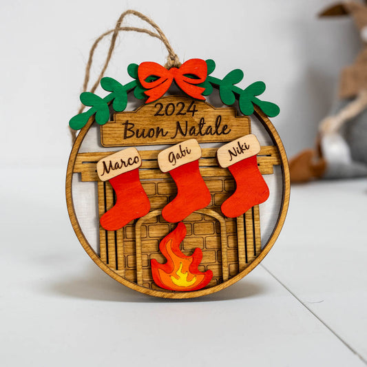 Семейна Коледна декорация Камина с чорапки с персонализирани имена