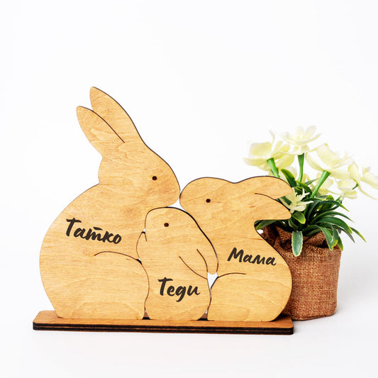 Персонализирана дървена фигура “Семейство Мечета” с гравирани имена