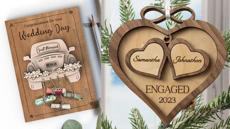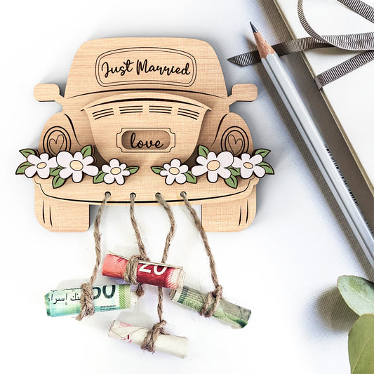 Personalized Wooden Wedding Card - 'Just Married' with space for a monetary gift