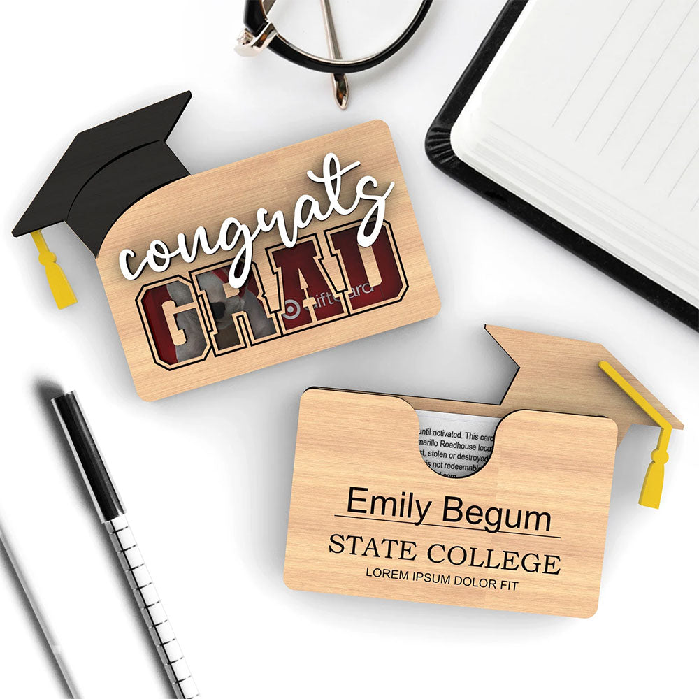 Подарък за дипломиране с отделение за пари – персонализиран дървен дизайн