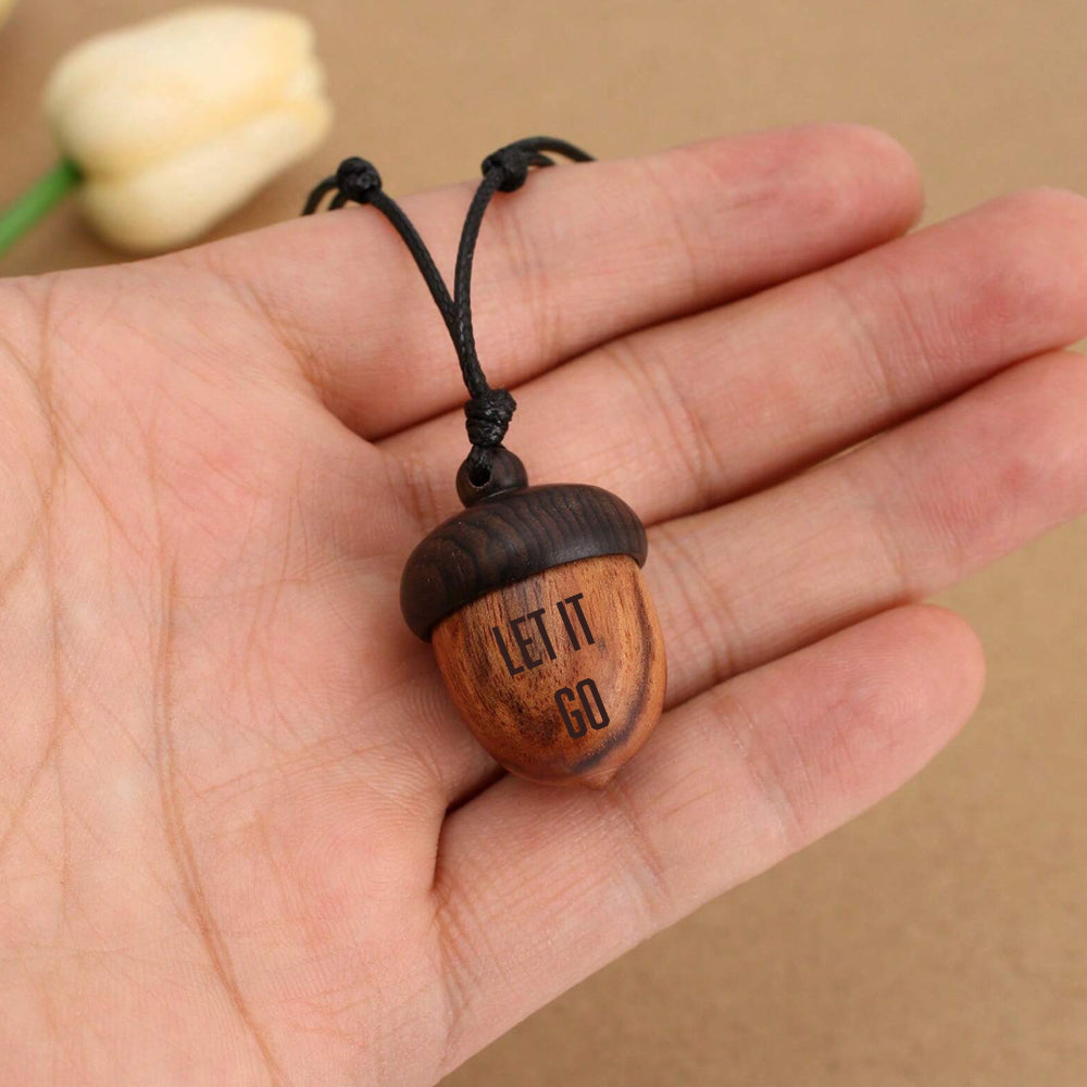 Представяме ви дървено колие Жълъд – уникален и вдъхновяващ аксесоар, който съчетава естествената красота на дървото с послание за мотивация. Формата на жълъд символизира растежа, силата и потенциала, а гравираното послание е за да ви напомня нещо скъпо и мило за вашата душа всеки ден.