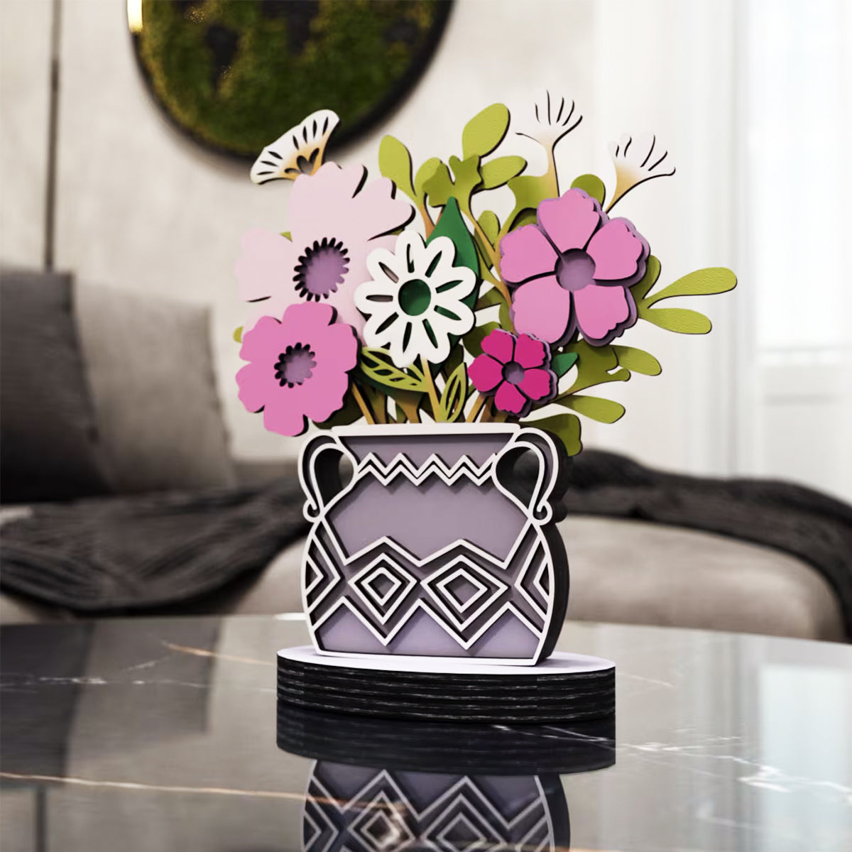 Внесете елегантност и стил в дома си с тази многослойна ваза с цветя. Тази ръчно изработена декорация е създадена с внимание към детайла и представлява идеален акцент за всеки дом. Перфектна както за подарък, така и за освежаване на интериора.