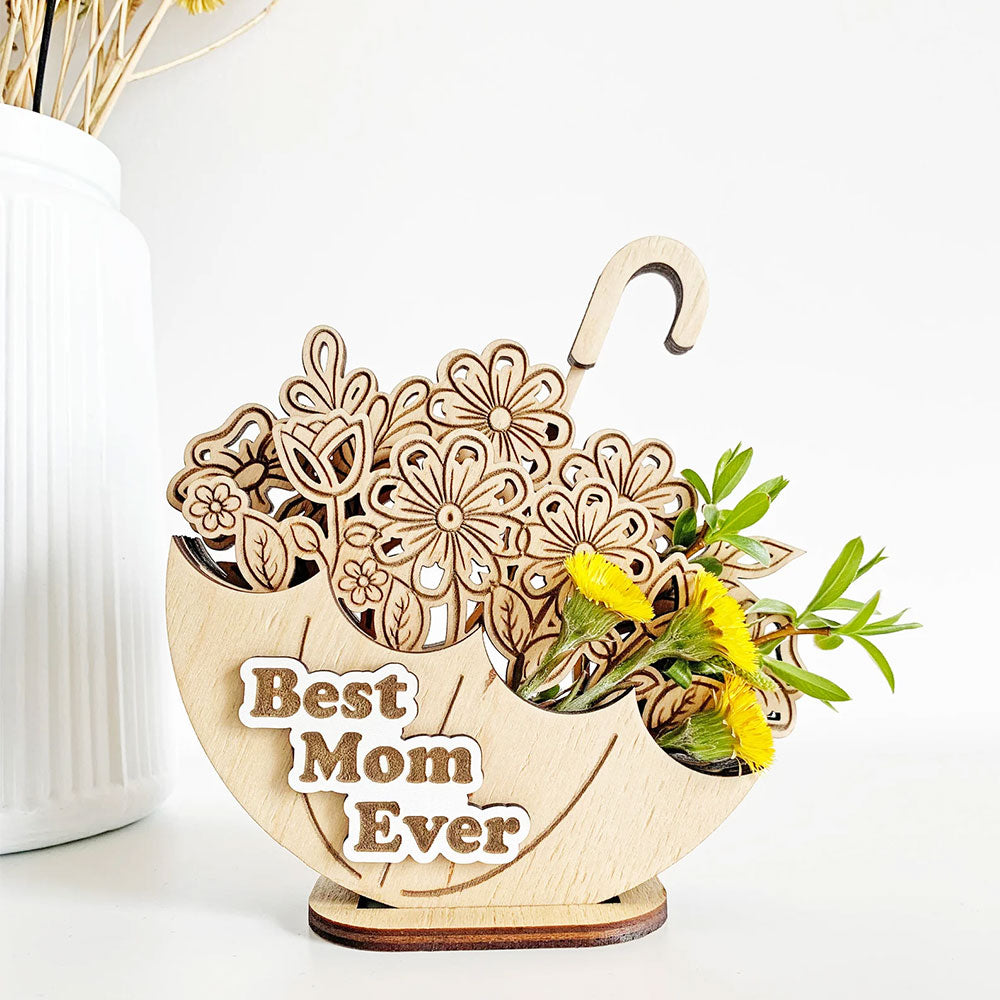 Дървен чадър с цветя „Best Mom Ever“ – красива изненада за мама
