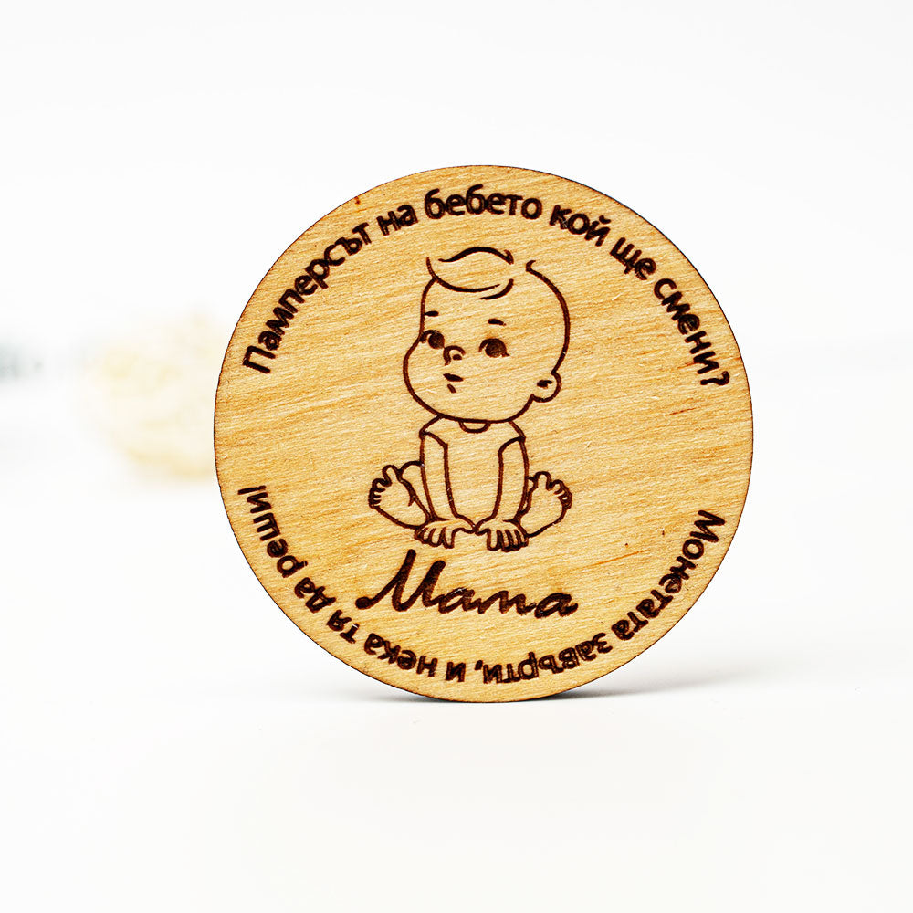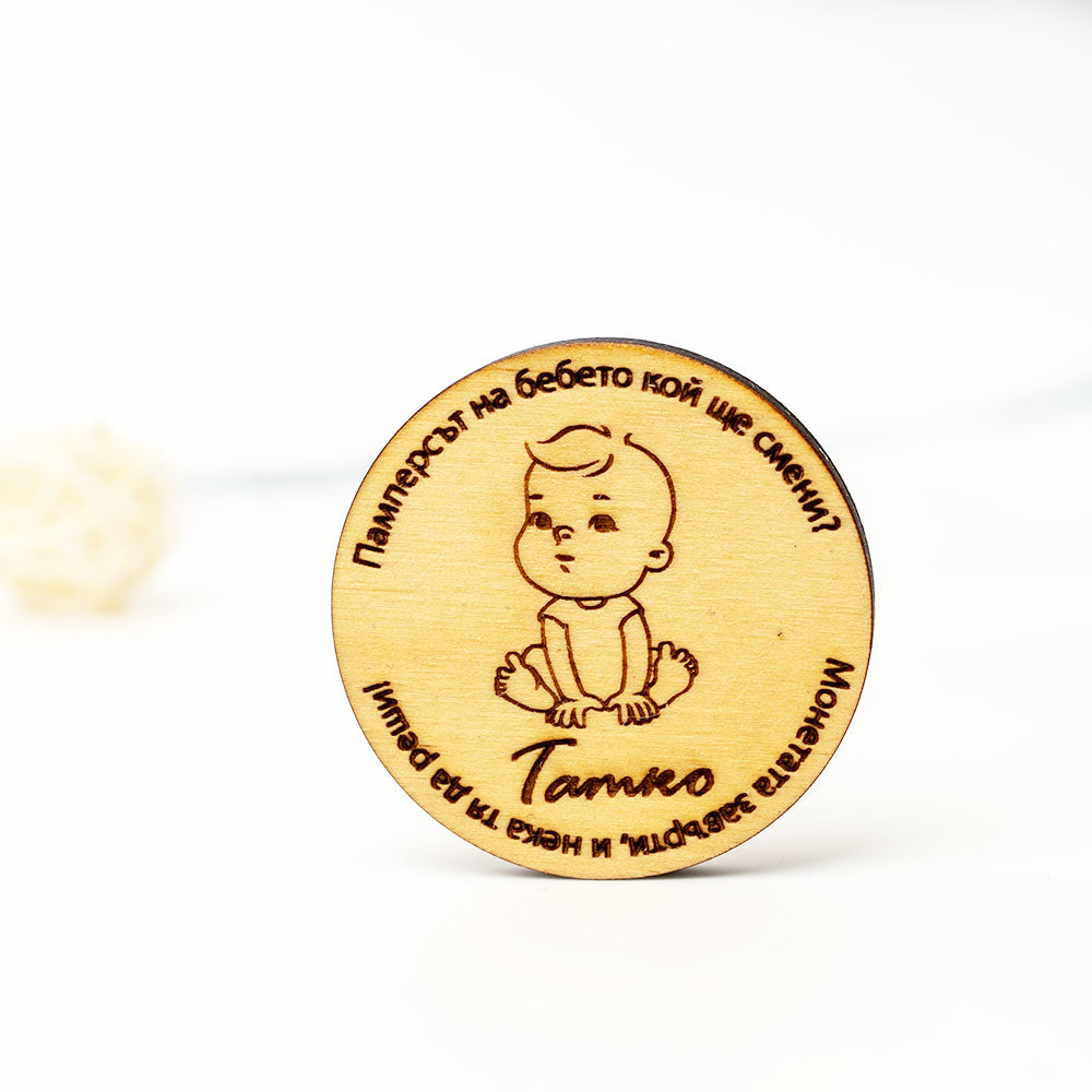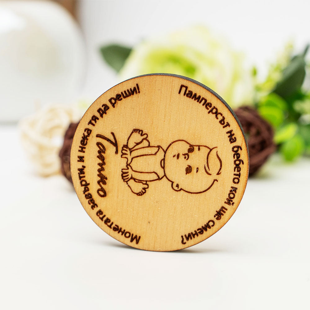 Забавна дървена монета "Памперсът на бебето кой ще смени"