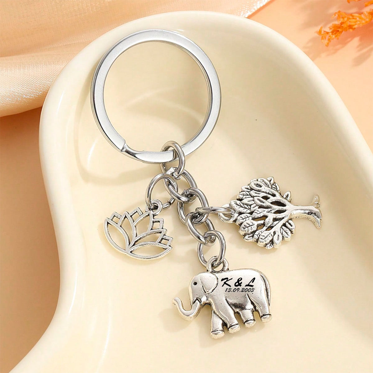 Персонализиран ключодържател с лотос, слон и дърво на живота – символичен подарък с гравиране
